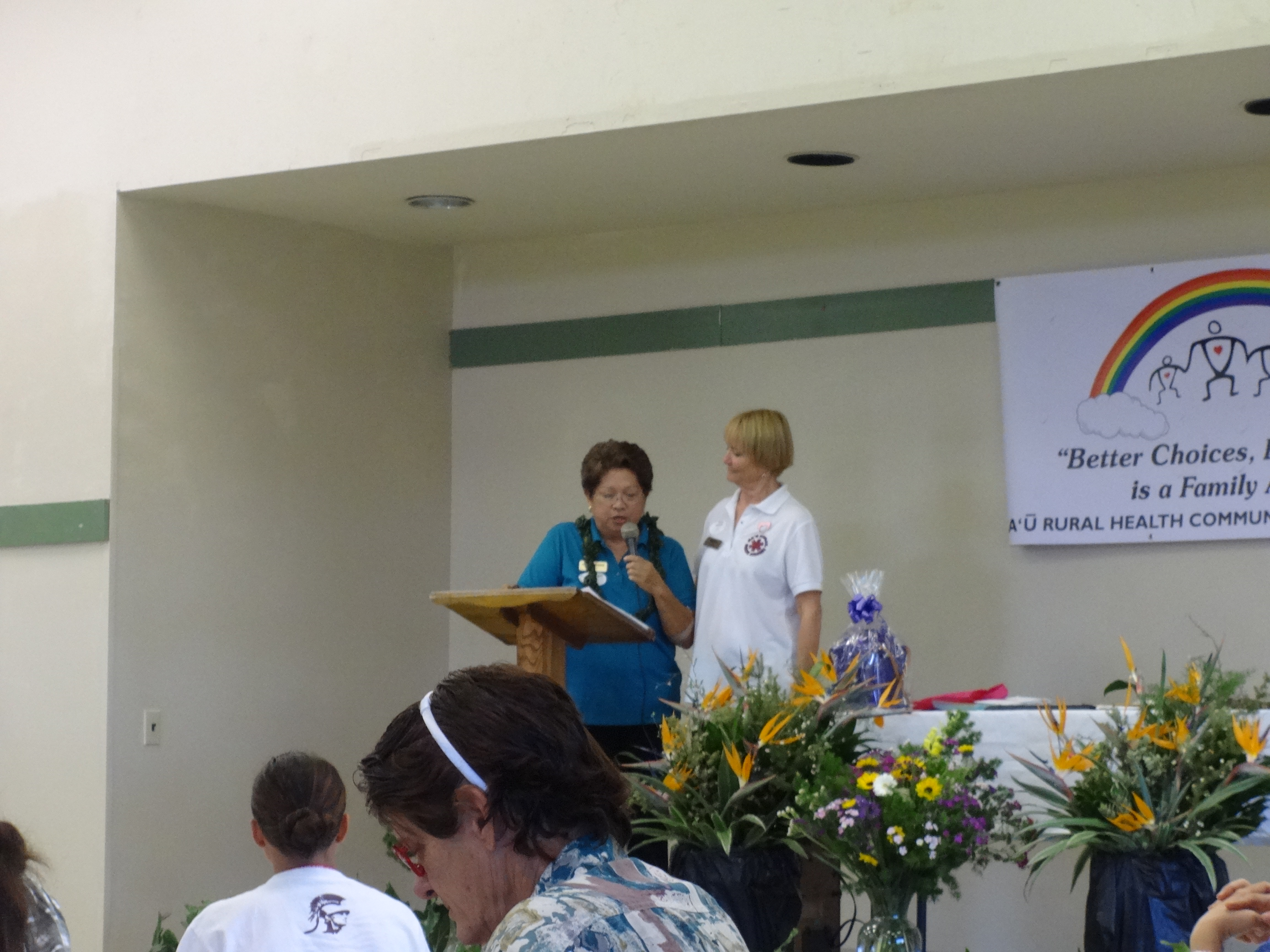 Through collaboration including partnerships and long hours that volunteers willingly contributed, the 18th Annual Ka’u Rural Health Conference was a sweet success. It comprised of numerous exhibitors: College of Pharmacy, Hiilei Aloha, LLC, Maui Economic Opportunity, Hawaii Health System Corporation, Department of Labor and Industrial Relations, Unitedhealthcare, Hui Malama Ola Na Oiwi, Kahuku Ahapua’a, HMSA, ADRC, University of Hawaii Hawaii Community College-Rural Hawaii Business Program, HiClass, University of Hawaii CCES, Department of Public Health, and the Ka’u Community Asthma Project Program.