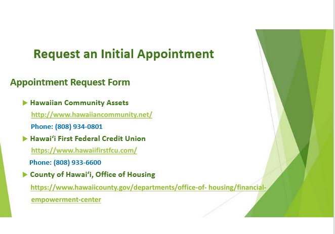 Hawaiʻi County announces the opening of its newly established Financial Empowerment Centers (FECs). Established through a partnership between the national nonprofit Cities for Financial Empowerment Fund, Hawai’i Community Foundation, Hawaiian Community Assets (HCA), and Hawai`i First Federal Credit Union (HFFCU), the centers offer free professional, one-on-one financial counseling and coaching as a public service to residents. Counseling sessions can range from 30 – 60 minutes, with no limitation to the number of free sessions an individual can participate in. The FECs are staffed with professionally trained financial counselors who can help residents 18 and older, regardless of income, manage their finances, pay down debt, increase savings, establish and build credit, and access safe and affordable mainstream banking products. Financial counselors can also make referrals to other services and organizations as needed.