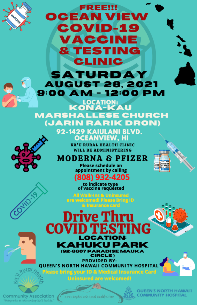 OCEAN VIEW: COVID CLINIC: Sat. Aug 28, 2021